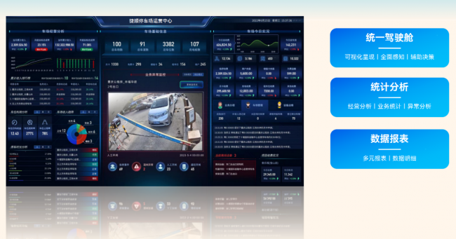 过去,园区管理者只能看到“今天进了多少车、收了多少钱”,却不知道哪些车在蹭免费时长、哪些收费环节存在漏洞、充电桩利用率为何偏低。捷顺将停车、充电、储能等多维数据汇聚分析,打造“停车管理一张图”,从集团总览到单个车场明细,经营数据可三级钻取。