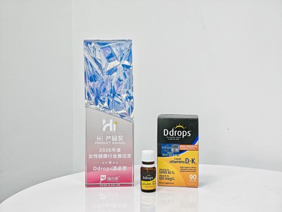 近日,备受瞩目的泛母婴行业盛会——2026嗨创周·泛母婴生态创新周在杭州国际博览中心圆满落幕。在同期举行的“2026 Hi Awards嗨创奖”颁奖典礼上,全球维生素D销量第一*品牌Ddrops滴卓思,凭借其明星产品5000IU D3K2的卓越表现,从众多参选品牌中脱颖而出,一举斩获“2026年度女性健康行业推动奖”。这一殊荣不仅是对产品硬核实力的认可,更是对Ddrops滴卓思深耕“有效营养”、推动女性健康管理升级的行业肯定。