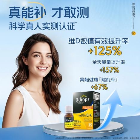 现代女性在职场与家庭的双重压力下,往往忽视自身的营养管理。维生素D的缺乏不仅影响骨骼健康,更与免疫力、情绪状态及长期的生活质量密切相关。Ddrops滴卓思5000IU D3K2针对成年人,特别是备孕、孕期及高压职场女性群体,通过高含量维生素D3(5000IU)与MK-7型维生素K2的科学复配,有效解决女性普遍存在的维生素D缺乏问题,同时促进钙质精准领航与骨骼健康,助力女性从基础营养管理迈向主动健康预防。