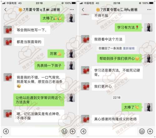 隆成义记忆法将这套科学方法论系统化地融入课程体系,开设了“21天记忆特训营” 、“高分解码计划”等核心课程,帮助中小学学生系统化地训练上述方法。小班制教学、全明星导师团队、3对1跟踪服务,确保方法落地。年轻助教与亲子专家的双重陪伴,不仅关注学员记忆力的提升,更关注其心灵的成长与自信的重建 。