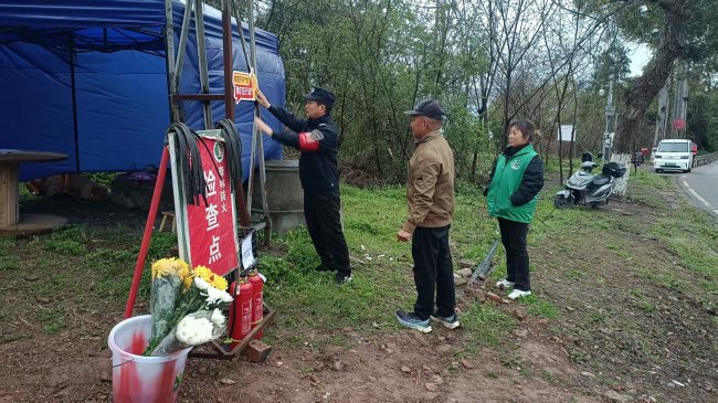同时,在林区及村庄周边向村民、进山人员发放森林防火宣传资料,讲解森林防火法律法规、应急避险技能,重点倡导鲜花祭祀、无火祭祀等文明祭祀方式,在林区祭祀点位摆放菊花,引导村民摒弃明火祭祀陋习,树立文明祭祀理念。