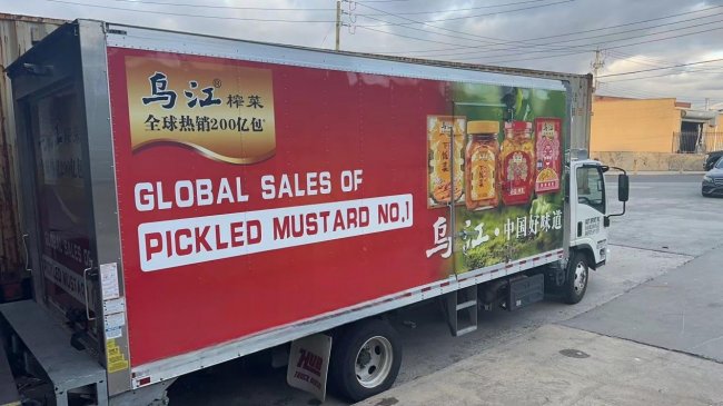 在渠道布局的同时,乌江榨菜联合当地合作伙伴,推出贴合北美市场的品牌推广组合拳。通过商超堆箱集中陈列、车身流动广告、重点门店试吃推广等多种线下形式,全方位提升品牌曝光度与消费者触达率,让更多海外消费者直观感受中国榨菜的风味魅力。地道的中国风味、稳定的产品品质,搭配精准的本地化运营,让乌江榨菜快速获得美国消费者的广泛认可,“中国榨菜”的标签在北美市场持续走红,产品市场认可度与终端销量持续攀升,形成了销量增长与口碑发酵的正向循环。