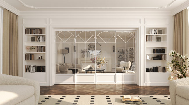可以说,星曜系列法式全景门不仅是家居的门扉,更是空间中的美学焦点。即使处于关闭状态,它也宛如一件精心雕琢的艺术品,以极简线条勾勒出优雅轮廓,与现代空间风格完美融合,为家居空间注入一抹法式浪漫风情。