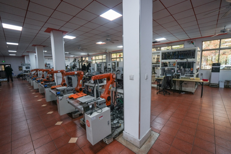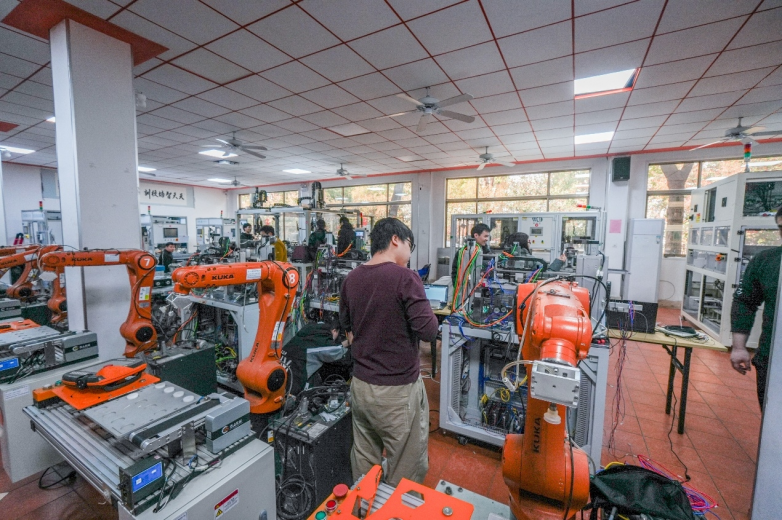在教学场景方面,重视场景还原,将教室打造成真实的工厂车间,配备工业机器人、PLC控制柜等前沿设备。学生在真实自动设备中编程调试,避免了理论与实践的脱节。