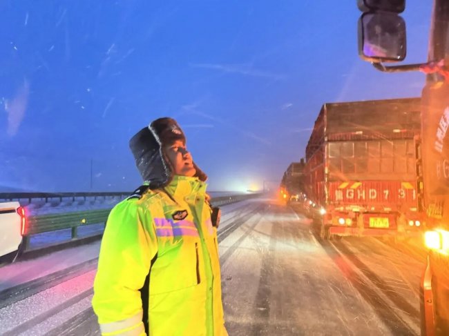 到达现场后,民辅警们分工协作、高效处置,有的手持工具清理路面积雪,有的仔细排查被困车辆和人员,有的走访周边牧点,排查是否有群众、牲畜受困。经过连续数小时的紧张奋战,救援人员在漫天大雪中成功开辟出应急通行道路,被困车辆安全驶离危险区域。