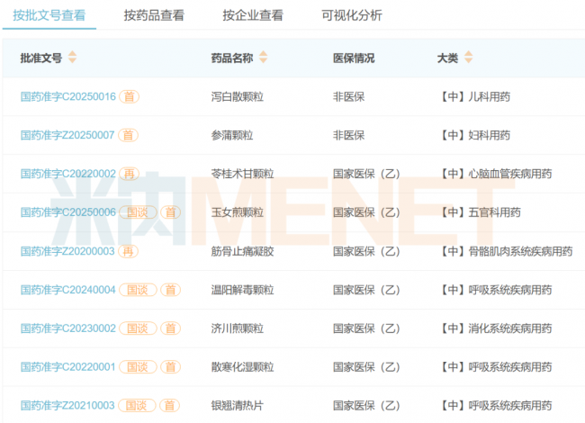 2020年以来康缘药业获批上市的中药新药(来源:米内网)