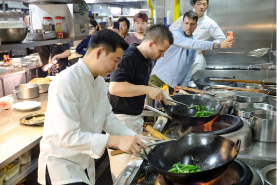 活动期间,嘉宾们深入金星鸭业,了解传统鸭胚制作工艺,并参与大董烤鸭工作坊,近距离感受非遗美食的传承与创新;走进三源里市场采买食材,在市井烟火中体会“食材为本”的东方饮食智慧;在厨艺大师班,杭帮菜名师傅月良、淮扬菜名厨陈鑫、川菜名厨梁棣分别演示并传授经典菜品的烹饪方法,邀请嘉宾亲手实操,让中式烹饪精髓在互动中薪火相传。活动还在慕田峪长城举办茶会与即兴烹饪,将中华饮食文化与历史人文景观深度融合,呈现出独特的东方美学意境。品鉴环节涵盖紫金阁、美·大董烤鸭店、兰斋植物料理、1996主厨·川菜餐厅、新荣记等京城知名食肆……从传统经典到现代演绎,全方位呈现中餐多元包容、守正创新的独特魅力。
