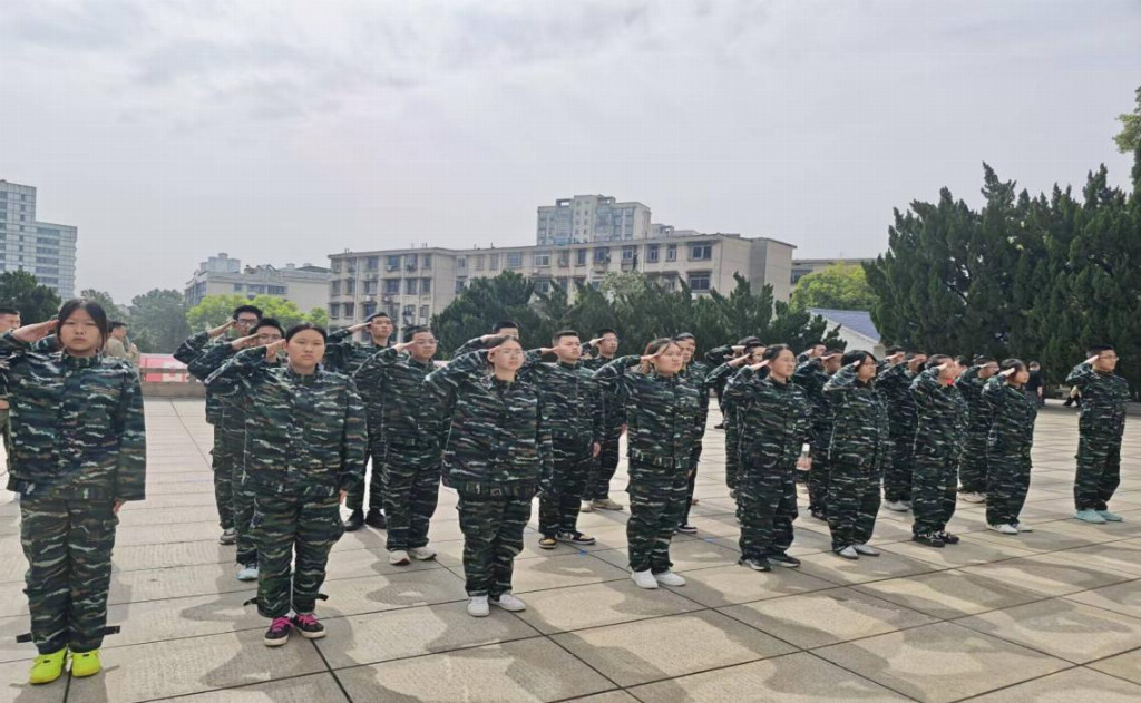 图为学生敬礼