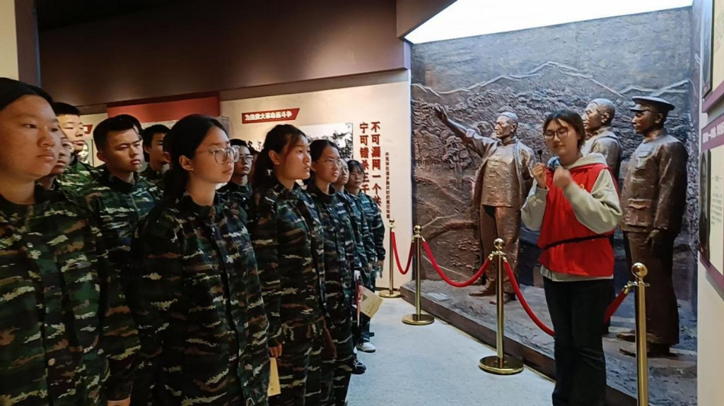 图为师生们参观烈士事迹展览馆并聆听讲解