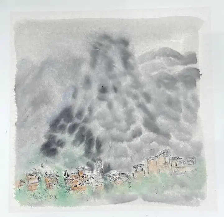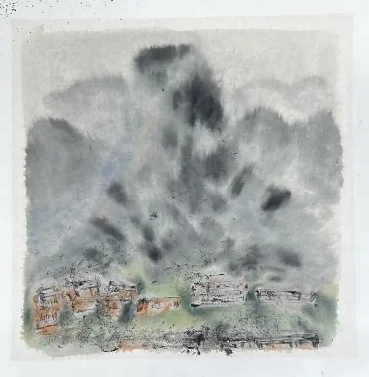 雨天 纸本水墨 50X50CM