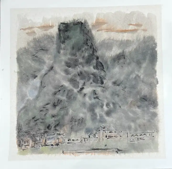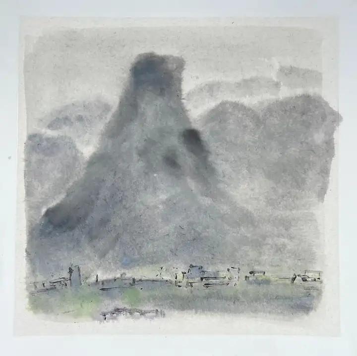 凌晨六点 纸本水墨 50X50CM(非真实尺寸) 作者:陈顺林