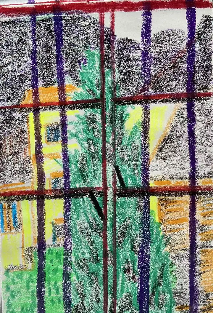 陈顺林的蜡笔手稿“窗外”写生