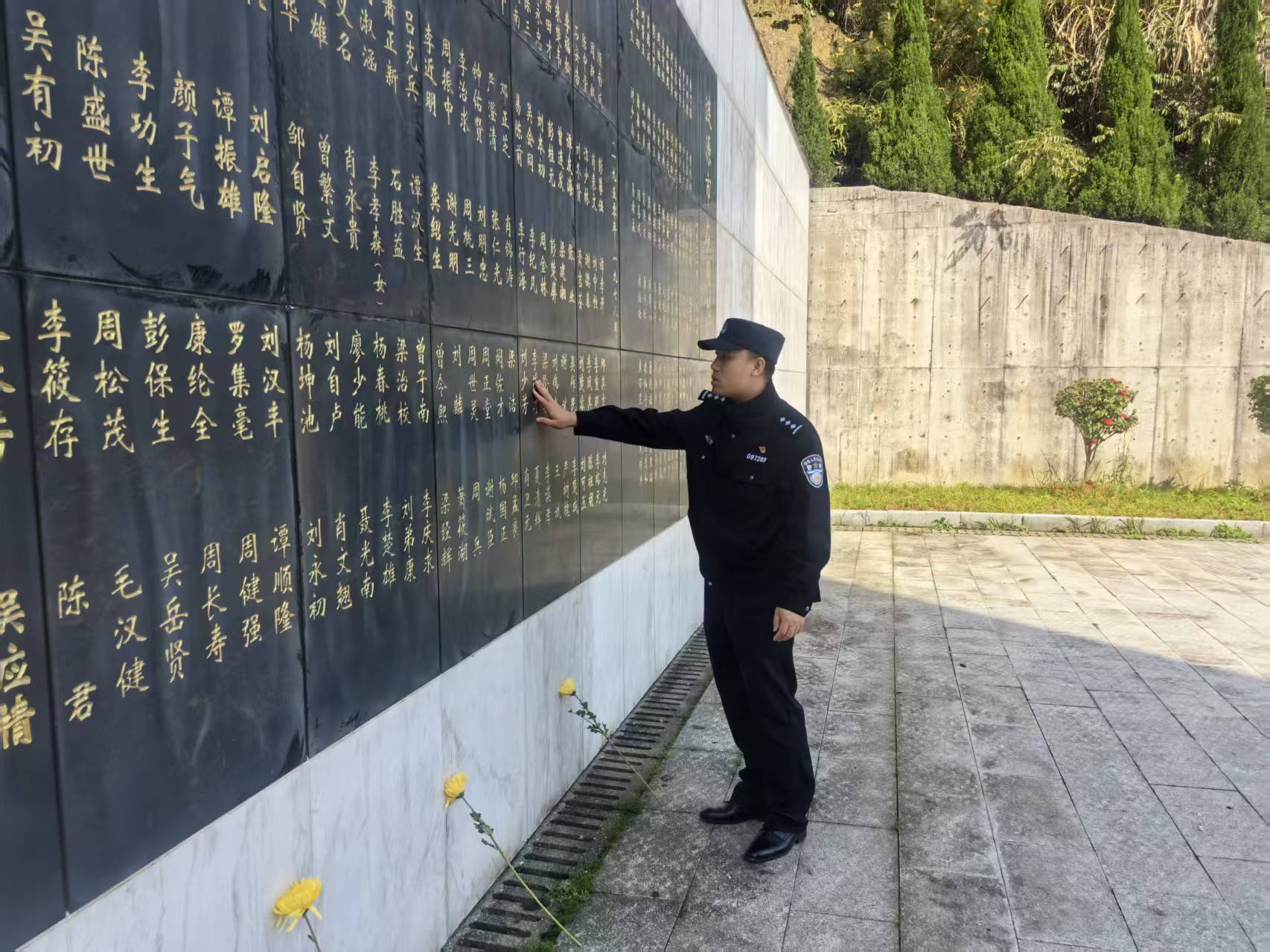 涟源市烈士公园位于娄底市涟源市洪水岭森林公园,园内安葬和记载着自1921年以来353名涟源籍英烈,其中包含在抗美援朝、对越自卫反击战中牺牲的英勇战士 。上午9时许,民警们怀着崇敬的心情沿石阶登山,巍峨的烈士纪念碑在苍松翠柏的映衬下庄严肃穆,碑身正面“革命烈士永垂不朽”八个镏金大字熠熠生辉 。