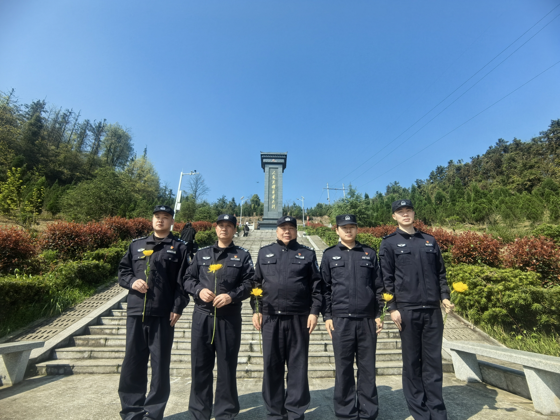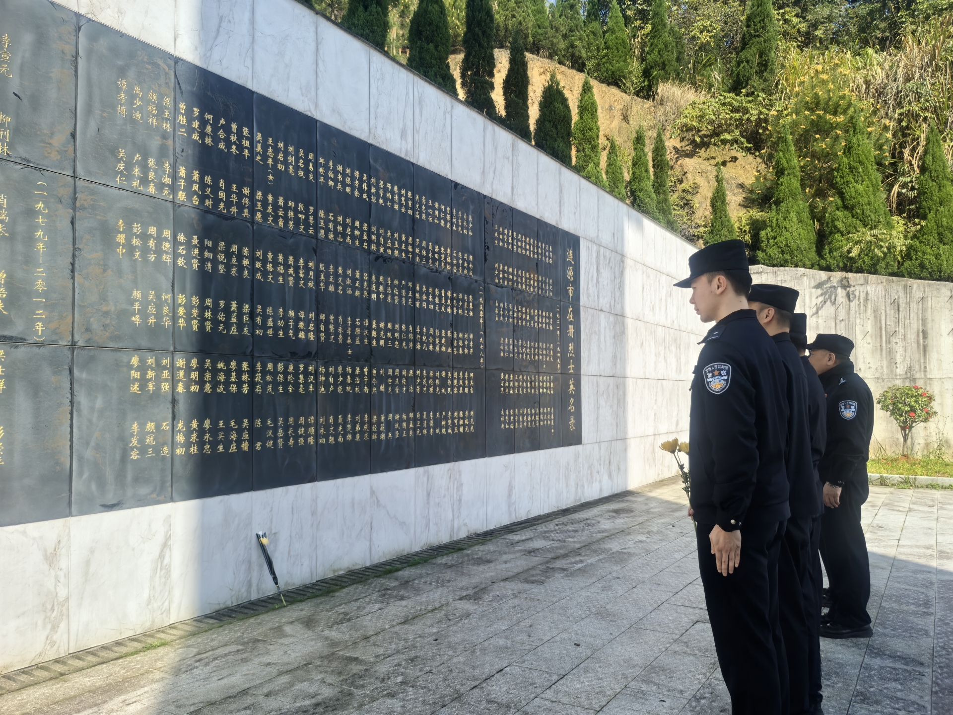 在纪念碑前,全体民警整齐列队,脱帽默哀,向为民族独立、人民解放和国家安宁献出宝贵生命的革命先烈表达深切哀思。随后,大家依次敬献鲜花,缓步绕行瞻仰纪念碑,表达对英烈的崇高敬意。