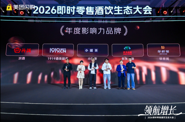 2026年3月,在2026年度美团即时零售酒饮生态大会上,1919与汾酒、农夫山泉、小罐茶等品牌荣获美团闪购“年度影响力品牌”。