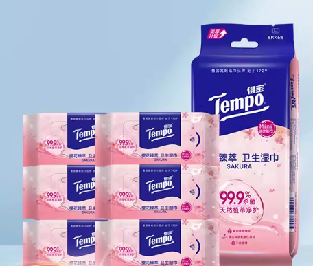 一场春雨、一阵微风,都让肌肤对清洁的需求多了一份温和诉求,而一款兼具春日氛围感与高效洁净力的湿巾,便能成为日常护肤与生活的点睛之笔。作为深耕高端纸品近百年的品牌,Tempo得宝mini樱花卫生湿巾,不止是一片清洁好物,更是将春日浪漫与妥帖安心,融入每一次擦拭的匠心之作。