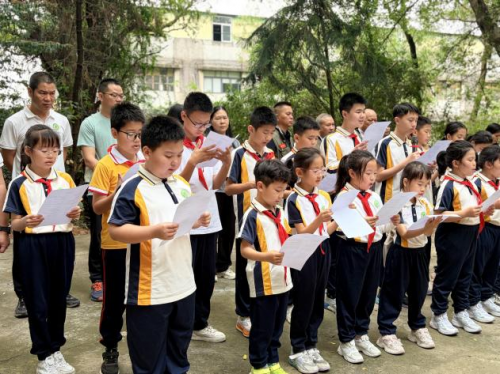 “风烟滚滚唱英雄,四面青山侧耳听……”西区中心小学2020级的学生们精神饱满、队列整齐,深情朗诵《英雄赞歌》。孩子们用稚嫩而坚定的童声,歌颂革命先烈的不朽功勋,展现出新时代青少年传承红色基因、立志报效祖国的昂扬风貌,让红色的火种在心中生根发芽。