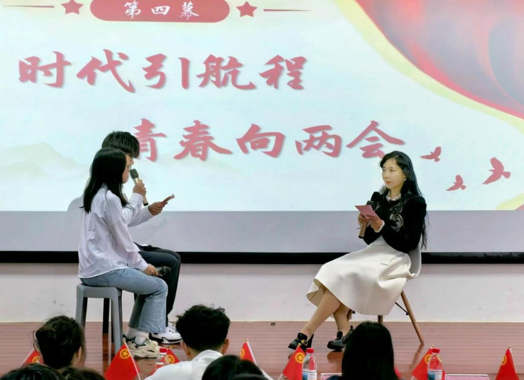 图五 主持人与老师共话两会精神