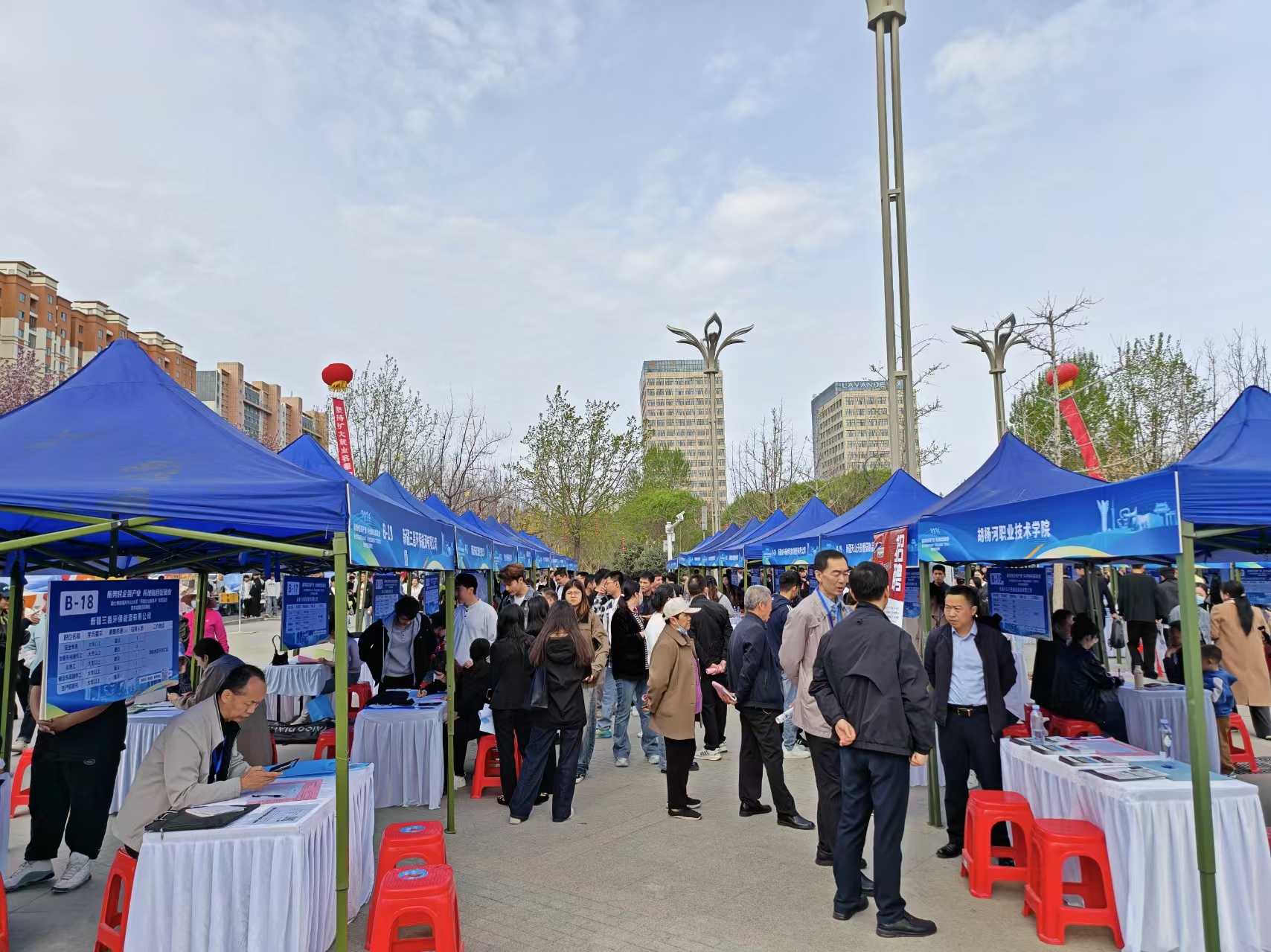 4月11日,第七师胡杨河市2026年“民营企业服务月”专项活动暨兵地融合招聘会在七师胡杨市天北新区中央公园举行。