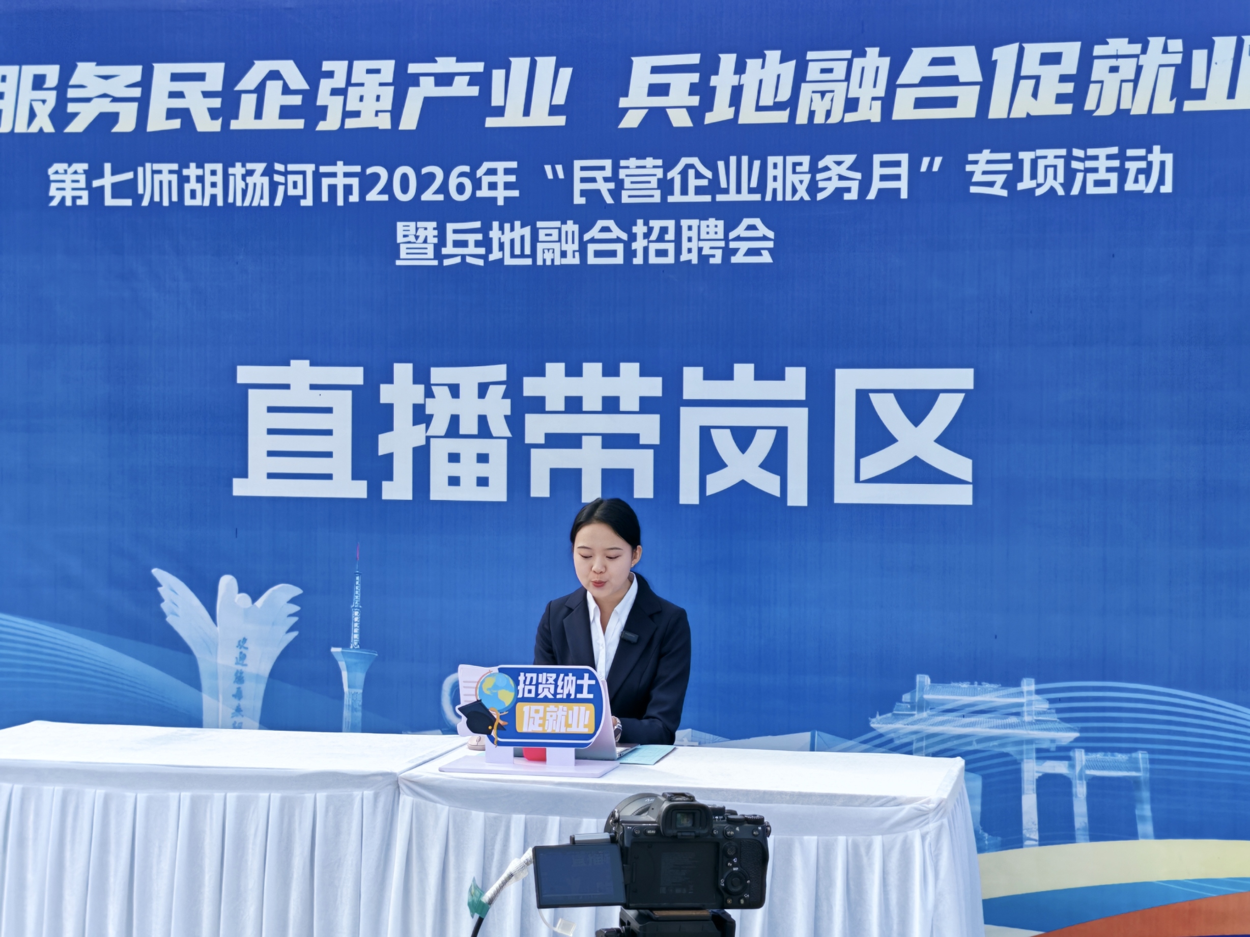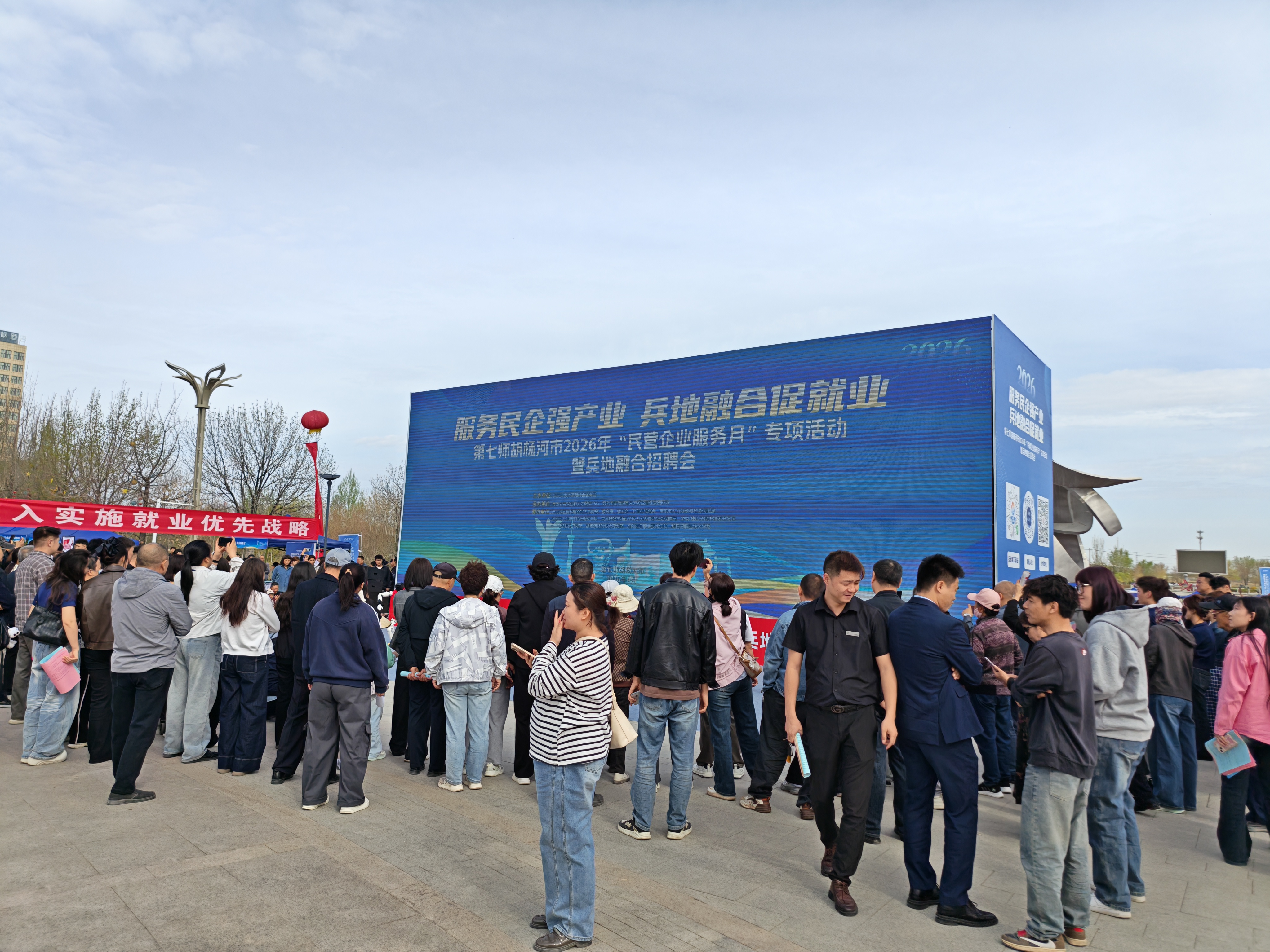 4月11日,第七师胡杨河市2026年“民营企业服务月”专项活动暨兵地融合招聘会在七师胡杨市天北新区中央公园举行本次活动由兵团人力资源和社...