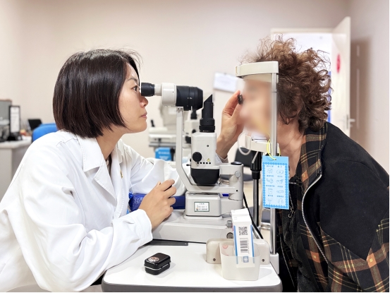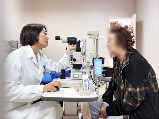 许奶奶双眼高度近视已有40多年,矫正度数约2200度,长期离不开厚重的框架眼镜。近10年来,她的右眼视力逐渐下降,看东西像隔着一层薄雾,近期甚至只能勉强分辨眼前晃动的手指。