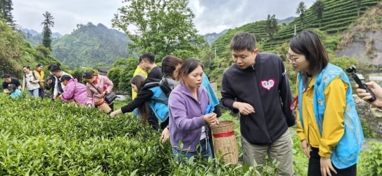 风雨无阻,双向奔赴。志愿者一行抵达保靖县黄金村后,在村支书和困境茶农的带领下,大家深入茶园地头,与困境茶农和儿童分组结对,边采茶边谈心,了解产业发展现状与茶农的实际困难,深切感受茶农的辛勤付出与乡土期盼,并共同探讨交流脱困攻坚之策。