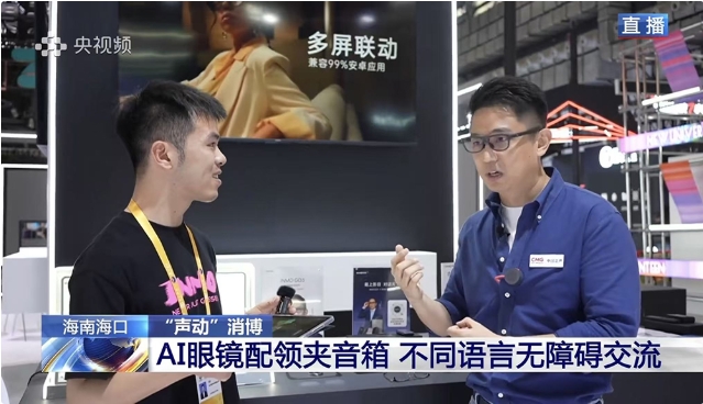 作为央视CCTV13现场报道的首个智能眼镜品牌,影目INMO在央视频直播中,展示了INMO GO3及INMO Speaker领夹音箱的真实应用场景。