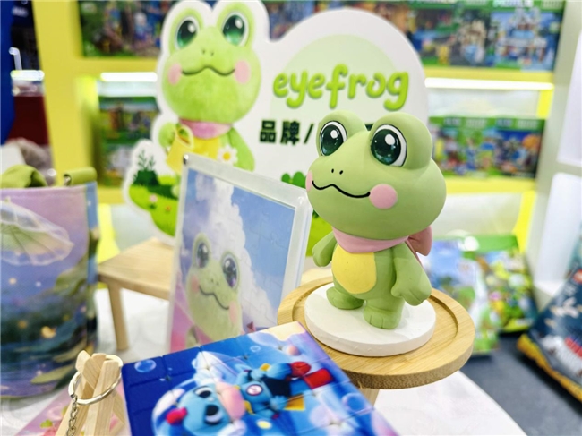 艾弗洛蛙eyefrog是叮当猫集团打造的长篇动漫《爆笑星球》中的核心主角,也是集团深耕近二十年的经典IP。本次参展,艾弗洛蛙eyefrog以“自然共生”为设计核心,将品牌IP内核与授权产品、合作场景深度融合,覆盖穿搭、家居、出行、休闲等全生活场景,直观呈现IP授权的多元落地可能,让到场合作伙伴清晰感知品牌IP的商业价值与合作潜力。展区内,萌蛙IP元素与自然肌理巧妙融合,从适配母婴、潮玩、服饰、家居等多品类的授权产品,到收藏级盲盒、手办及IP周边,每一件展品都承载着“亲近自然,精致生活”的品牌主张,既彰显了IP的灵动与治愈感,也凸显了跨品类授权的广泛适配性。