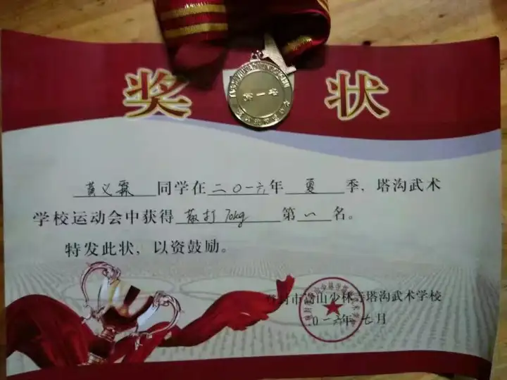 为了能让儿子接受更系统的训练,父亲带着他离开了家乡,慕名前往嵩山少林寺塔沟武术学校。这所被称为“冠军摇篮”的武校,培养出无数散打名将。在塔沟的三年,黄义霖像一块海绵,疯狂吸收着传统武术与散打的精髓。高手如林的校运会上,2015年他一举夺得塔沟校运会散打70公斤级第一名。