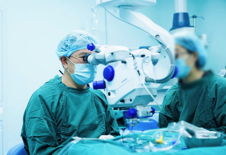 经过详细评估,由成都东区爱尔眼科医院刘东敬院长领衔的医疗团队制定了个性化联合手术方案:先由白内障专科徐正东主任主刀完成左眼白内障手术,再由刘东敬院长接力实施眼底手术。整台手术历时2个多小时,涉及白内障超声乳化、人工晶体植入、视网膜复位等多个高难度环节。