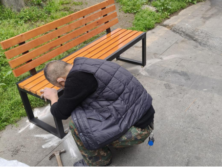 本次活动是金华社区“锦绣芙蓉·互助幸福”项目蔬菜点位建设的第三期活动,实现了点位建设工作的完整闭环。活动现场,工作人员与施工人员首先完成了公园椅物料进场、场地清理等筹备工作,随后严格按照规划点位,有序完成4张公园椅的定点、安装、固定与全流程安全调试。过程中邀请居民代表全程参与协助,同步向居民讲解公园椅等配套设施的日常维护注意事项,切实保障设施安全长效使用。公园椅的落地投用,完善了蔬菜点位的休憩服务功能,为居民购菜等候、邻里日常交流提供了舒适的便民空间,切实提升了居民生活便利度。