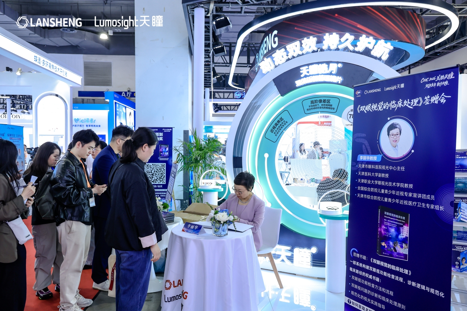 4月11日,天津市眼科医院李丽华教授亲临兰胜天瞳展台,举行《双眼视觉的临床处理》书籍签赠会,现场排起长队,气氛热烈。