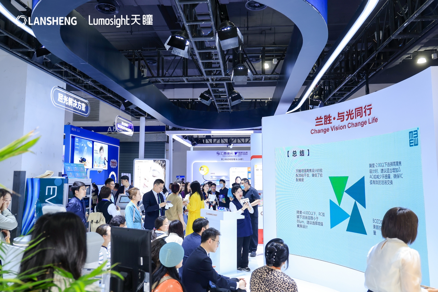 其中,近视防控光学方案与数字天瞳方案尤为引人关注,参观者可深入了解天瞳皓月双效近视管理镜片的强效控轴技术及一年期临床试验数据,体验OK镜个性化适配方案及数字验配系统的高效流程。