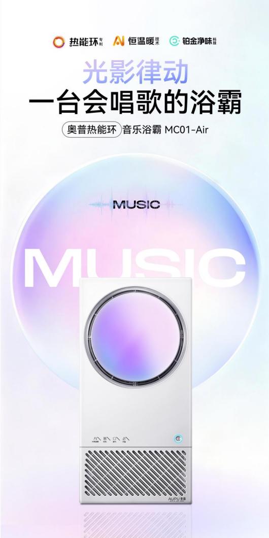以“光影律动,一台会唱歌的浴霸”为核心特色,搭载360°环绕音效,7种光影模式可随音乐律动或切换风景氛围,适配解压、洗澡喜欢听音乐听广播新闻、亲子沐浴等多元场景。产品搭载热能环专利与AI恒温暖技术,解决传统浴霸直吹、温度不稳问题,铂金风除臭功能除臭率高达92.79%。支持小程序远程操控,整机通过IP44防水认证,运行声压级仅40-50dB,音乐播放清晰无杂音。