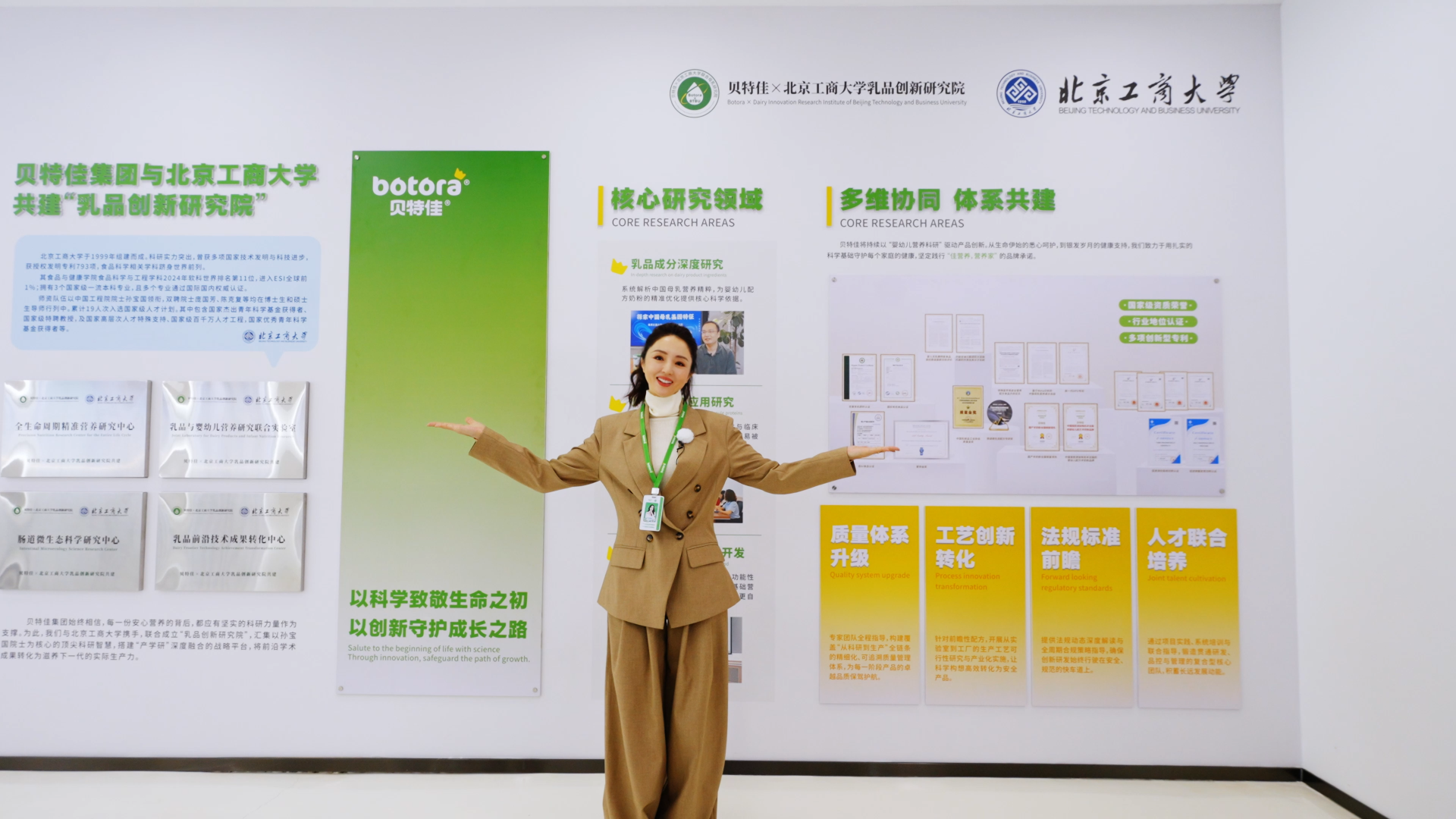 而贝特佳敢于在全国范围内推动胃酸模拟实验,底气正源于其多年来在肠道微生态领域的深耕,以及对自身品质的绝对自信。早在 2022 年,贝特佳就与北京工商大学食品与健康学院共建了母乳创新研究院,依托院士领衔的专家团队,针对中国宝宝的肠道特点开展专项研究,形成一套完整的肠道微生态养护体系。