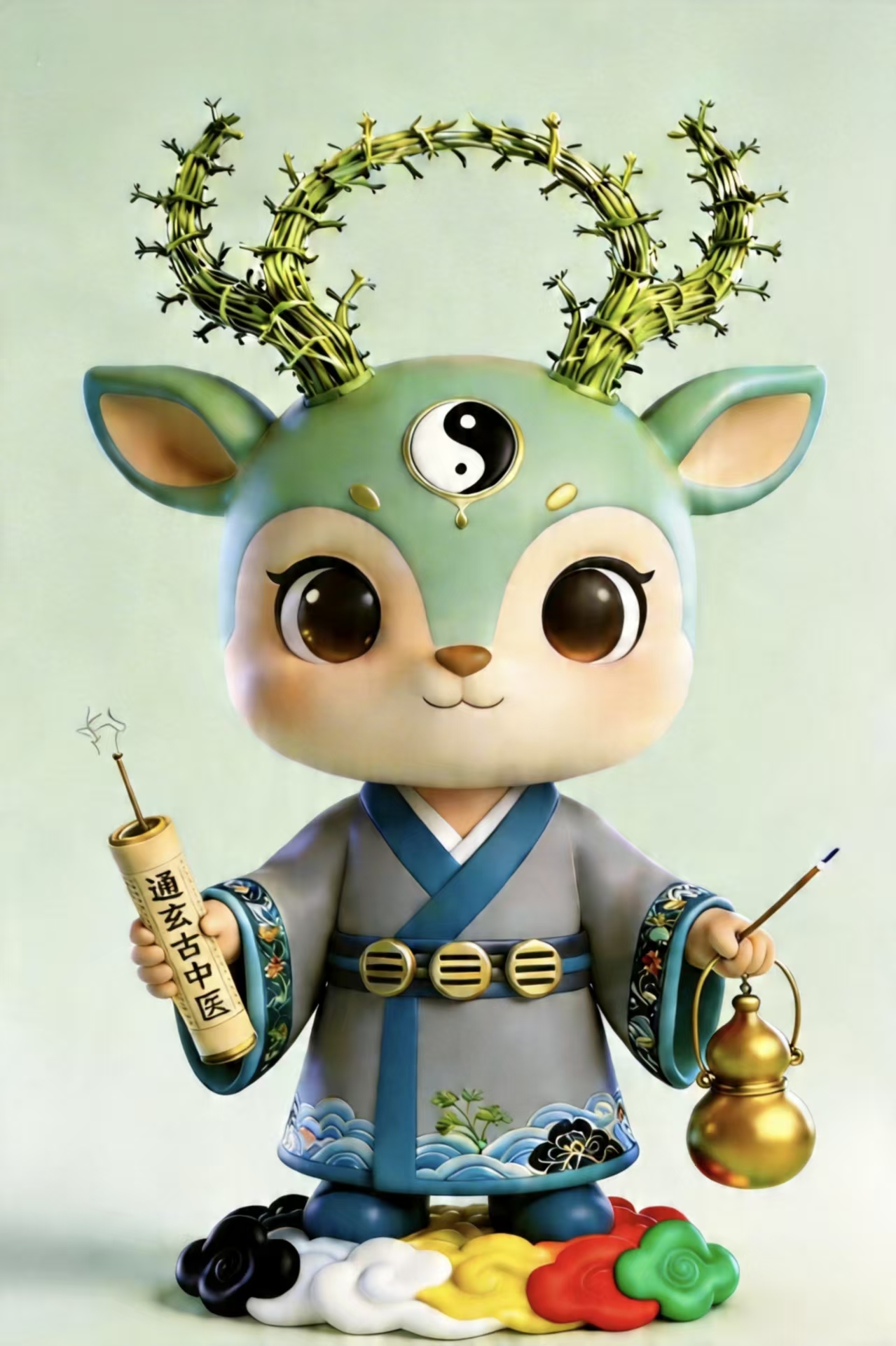 · 鹿角与草药元素:鹿角形态融入草药纹样,暗示中医“草木皆药”的智慧。