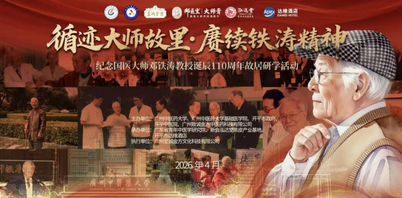 2026年4月17-18日,为隆重纪念国医大师邓铁涛教授诞辰110周年,由广州中医药大学、开平市政府、广州致诚金方中医药科技有限公司等单位联合主办的“循迹大师故里,赓续铁涛精神”故居研学活动在广东广州、开平、新会三地顺利举行。