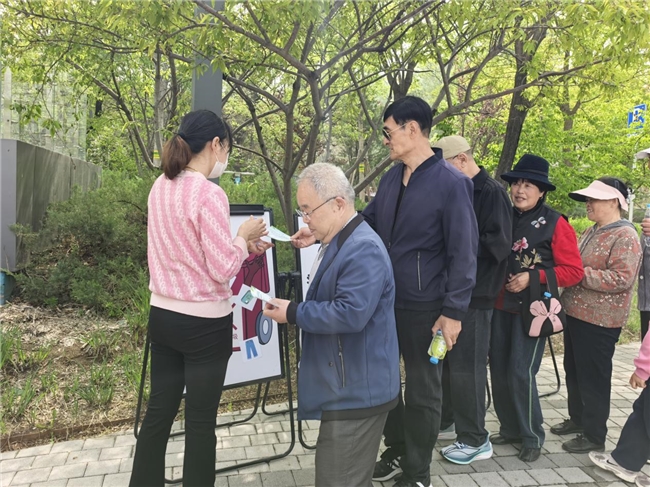 宣讲过后,健步走打卡环节正式开启,居民们精神饱满、结伴而行,沿着既定路线有序前进,沿途打卡4个特色站点,每完成一个站点的任务,便可获得一枚印章,集齐4枚可兑换相应纪念品。在分类识别站中,居民们动手修正磁贴板上的错误分类,在志愿者指导下精准区分塑料瓶、泡沫等可回收物与其他垃圾;分类问答站里,转盘答题互动热烈,大家积极抢答低值可回收物相关问题,答对后获得盖章奖励,在趣味互动中巩固分类知识;分类套圈站以可回收物为主题,塑料瓶、易拉罐等图案的套圈吸引居民踊跃参与,套中后答题即可领取小礼品,现场氛围欢乐融洽;在承诺践行站处,居民们在横幅前集体合影,齐声喊出“健步低碳行,空瓶焕新生——共建美丽石景山!”的口号,用誓言践行低碳环保承诺。