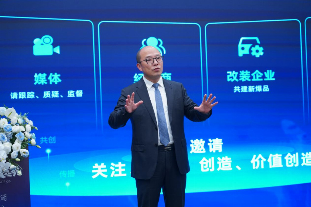 奇瑞商用车副总经理、全新品牌总经理杨峻岭在奇瑞商用车2026合作伙伴大会VAN事业部分会场发表主题演讲