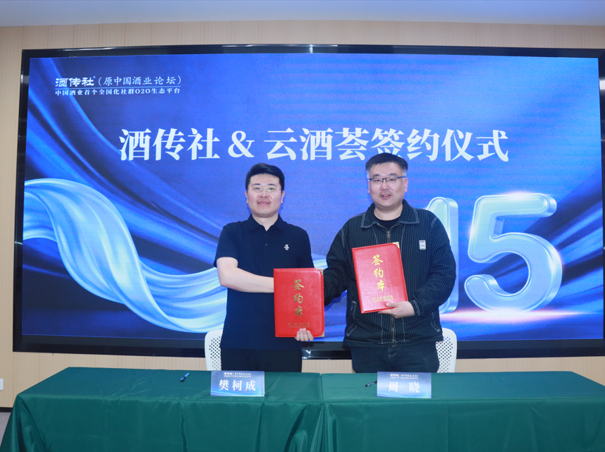 会议期间,酒传社与云酒头条正式签署战略合作协议。云酒头条董事长周晓表示,酒传社拥有深厚的经销商社群基础,云酒头条则在内容深度与企业资源上优势显著。双方将在社群联动、内容共创、游学考察等方面深度合作,实现“1+1>2”的协同效应。赵禹将此次签约形容为“兄弟平台的强强联手”,将为酒业厂商提供更全面、更深入的服务。