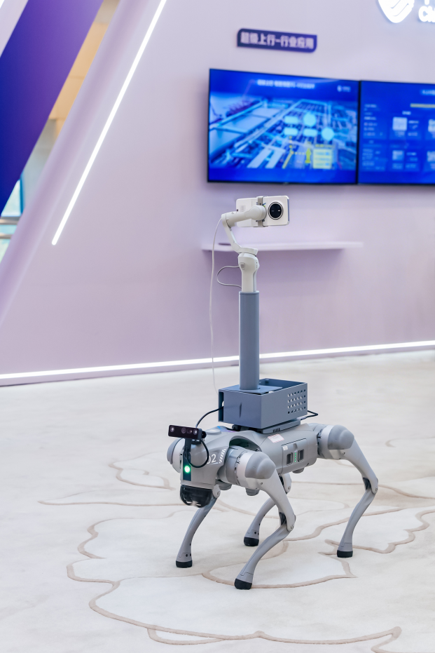 现场,一个四足机器人给记者递来一杯咖啡。得益于先进的运动控制算法和5G-A超级上行广覆盖能力,这个四足机器人能根据地形实时调整步态,实现从智能取件到安全送达的“即时快送”,也能化身“智能跟拍摄影师”,跟随并捕捉动态行人并高频上传图像到云端处理,甚至还可以化身智慧园区“生态巡检官”,实时高清回传视频与传感器数据。