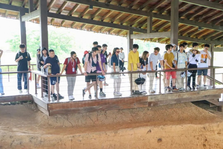 一路向前来到南城墙遗址展示点。这里是良渚古城遗址公园内目前唯一一处向公众真实展示五千多年城墙剖面的遗址点。观察呈条垄状分布的石头与墙体黄土,探究良渚先民以“草裹泥”修筑城墙、水坝的智慧。