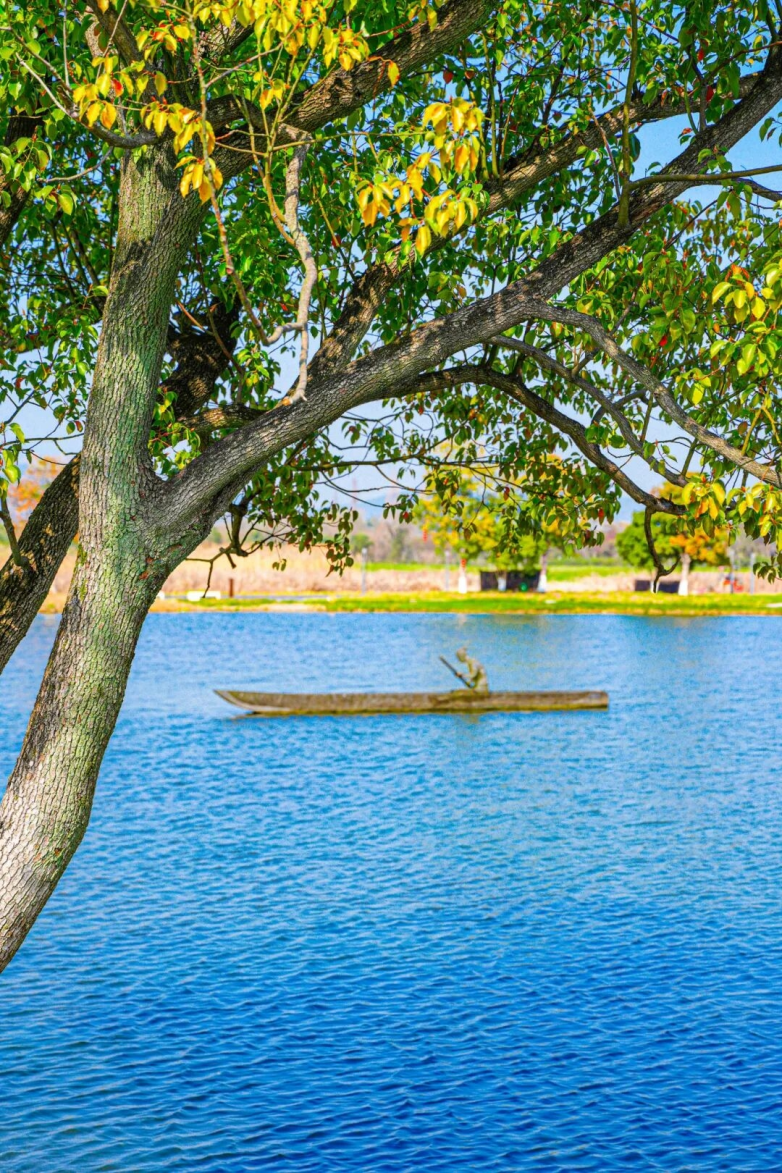 一路向北,当千年古河道映入眼帘,便到了钟家港遗址区域。在这里体验玉器、漆器、陀螺、纺织、衍纸手作。水中金属网格雕塑再现了良渚先民乘独木舟前行的场面,向人们展示着五千多年前良渚先民“依水而居”的生活图景。
