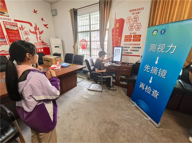 与此同时,另一个教室也在有序忙碌——脊柱与视力健康筛查现场。学校提前准备的两间脊柱筛查室、一间视力筛查室里,专业设备已调试到位,来自电子科技大学、南充市第四人民医院的工作人员,耐心细致地为每一位学生进行检查。“同学,抬头挺胸,放松肩膀”“眼睛看着前方,不要眨眼”,温柔的叮嘱声不绝于耳。筛查过程中,工作人员逐一记录数据、建立专属健康档案,对发现的异常情况,给出针对性的干预建议,让家长和学生第一时间了解自身健康状况。