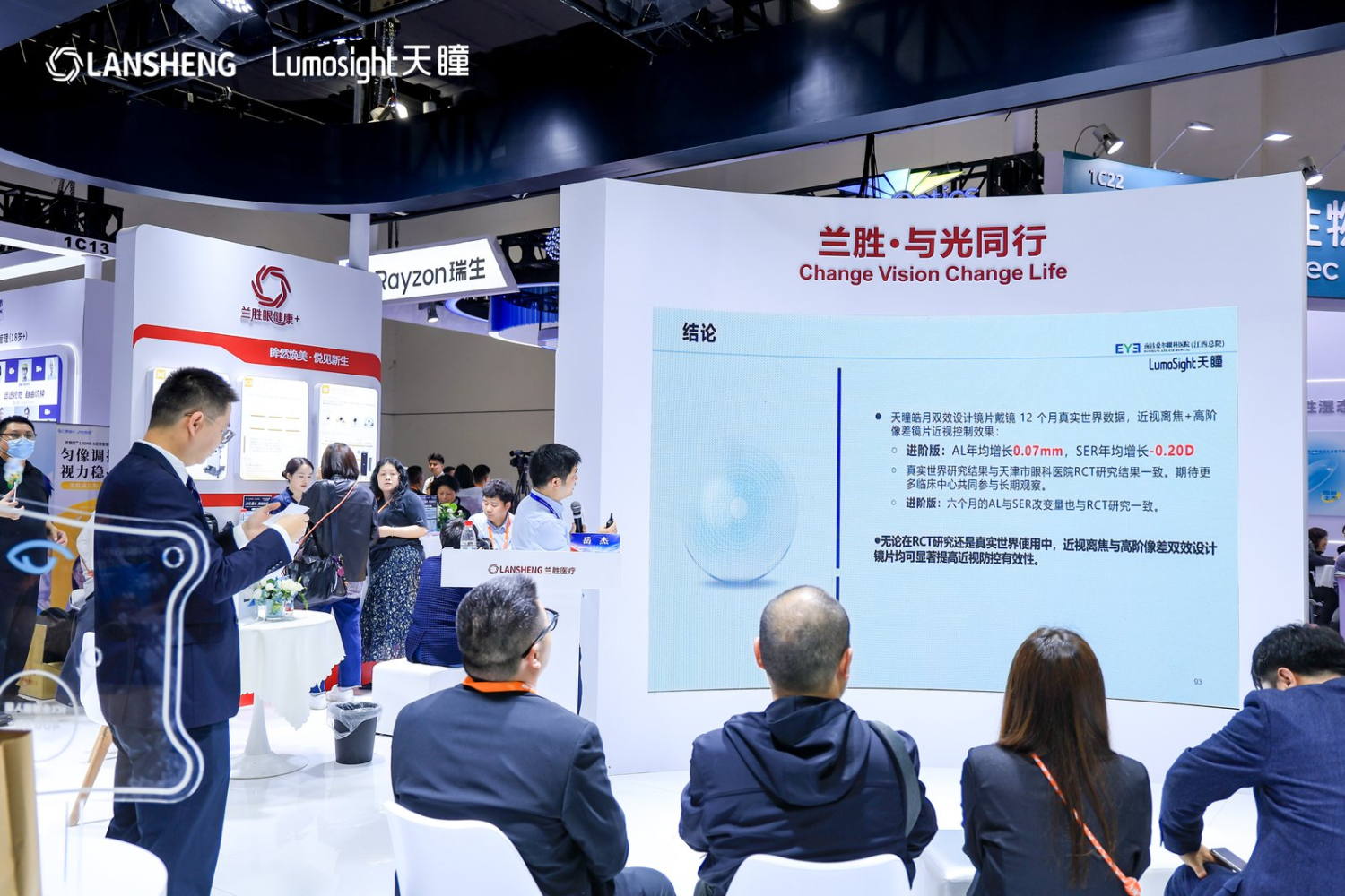 2026年4月10日,在COOC 2026盛会期间,兰胜医疗与天瞳视光1C19展台化身学术讲堂,连续举办两场展台学术会议。多位业内专家受邀亲临现场,围绕近视管理、角膜塑形镜验配、斜视合并近视矫治、双效镜片临床研究等热点话题展开深度分享。前沿观点交锋,实践智慧共享,吸引众多同道驻足聆听。