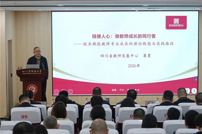 专题研学阶段,四川省教师发展中心副主任崔勇作《学校干部的“新角色”画像 ——“十五五”教育领导力的战略重构》主题报告,解读数字化背景下学校管理新定位、新使命、新路径;绵阳中学信息中心副主任苏远龙以《数智赋能,融慧育人——绵阳中学“数治・育人”的智慧校园全景式融合实践》为题,系统分享智慧校园规划、平台建设、数据治理、场景应用等实践经验,为我校信息化建设提供宝贵借鉴。