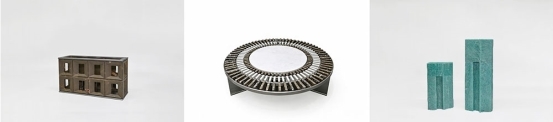 “万神殿” 烛台(左);“仲夏” 咖啡桌(中);“海浪” 花器(右)