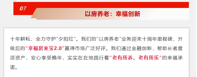 在积极应对人口老龄化的国家战略背景下,幸福人寿始终将发展普惠金融作为重要使命,持续深耕养老保险领域。公司旗下的“幸福房来宝2.0版”老年人住房反向抵押养老保险,正是其多年探索与创新的代表性成果,为破解”房产富裕、现金贫困”的养老困境提供了切实可行的解决方案。