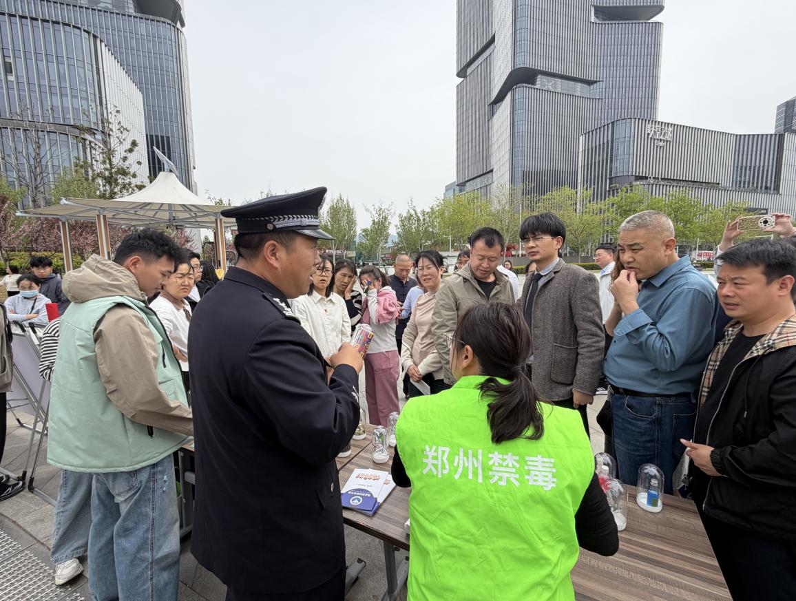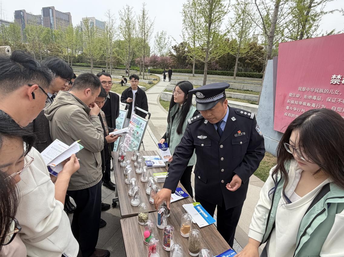 为进一步筑牢全民识毒、防毒、拒毒思想防线,让禁毒知识融入群众日常休闲生活,4月2日中午,郑州市公安局禁毒支队、郑东新区禁毒大队、全人社工、播美禁毒社工走进郑东新区禁毒公园,依托公园良好的氛围与环境,以毒品模型展示、宣传展板讲解为载体,开展以“禁种铲毒”为主题的沉浸式禁毒宣传教育活动,为园内游玩的居民送上一堂生动的 “户外禁毒课”,并让大家深入了解禁毒公园的专属禁毒内涵。