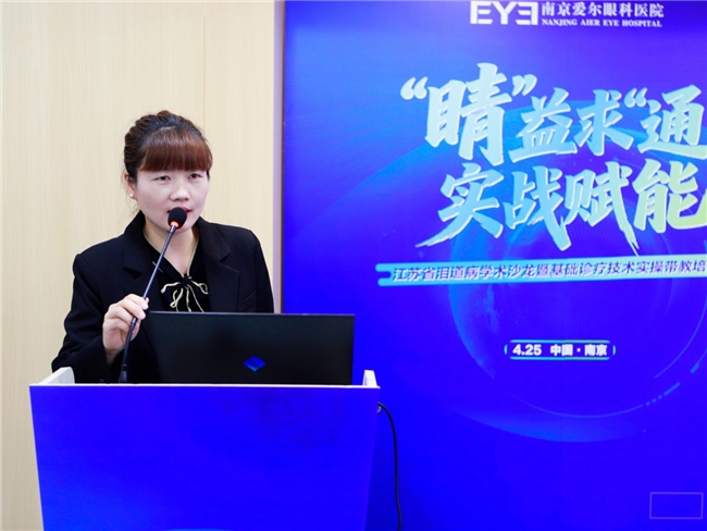 南京爱尔眼科医院综合眼病科副主任、爱尔眼科医院集团江苏省区泪道学组常务副组长郑群,也结合自身丰富的临床经验,就内镜下泪囊鼻腔吻合术的临床优势、泪道疾病精准诊疗要点进行了专题授课。